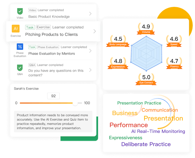 Combined with UMU’s AI coach, mentoring tools like exercises and phase evaluations allow you to keep track of performance and provide feedback in the flow of work, so as to ramp your employees up faster.