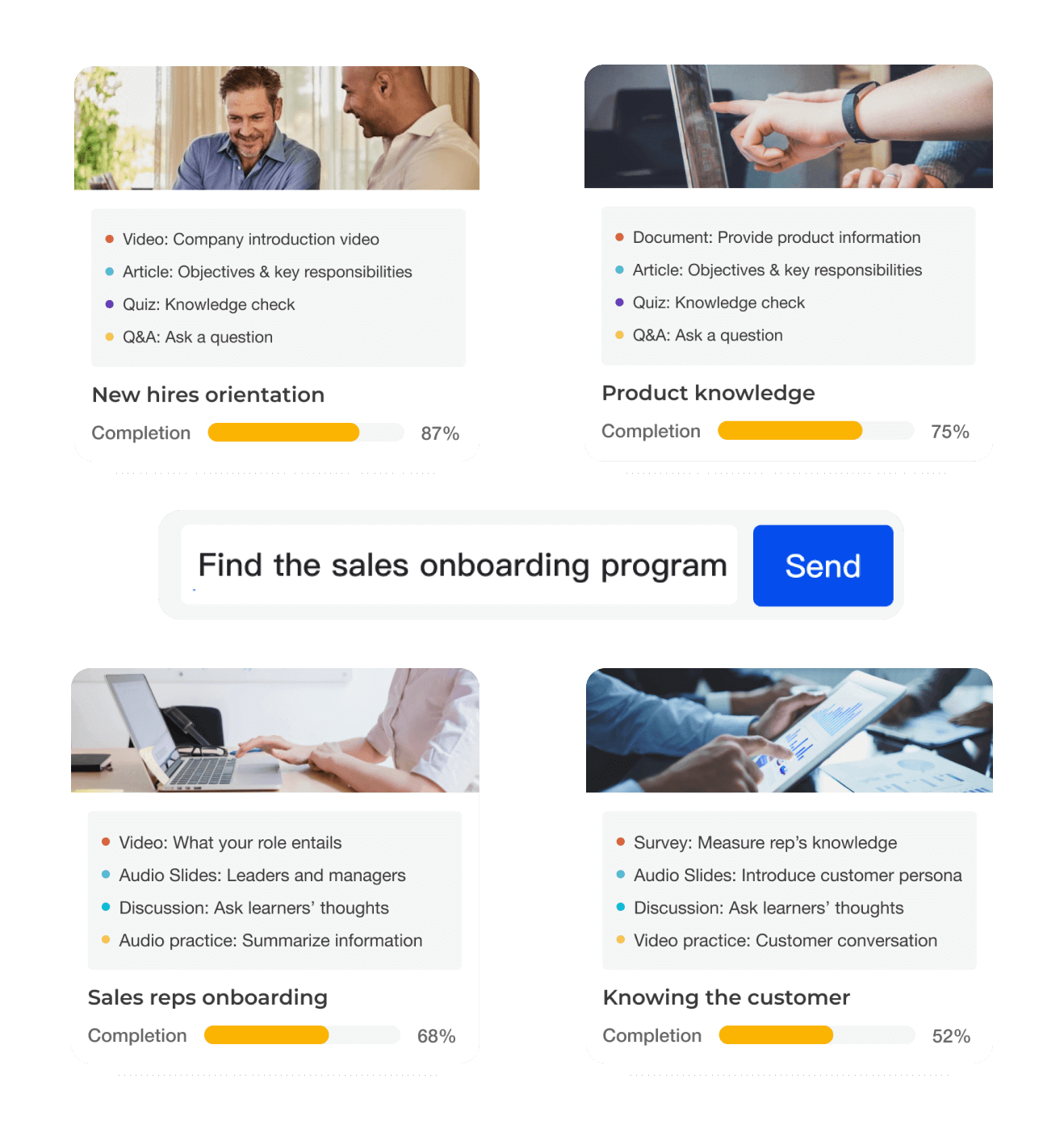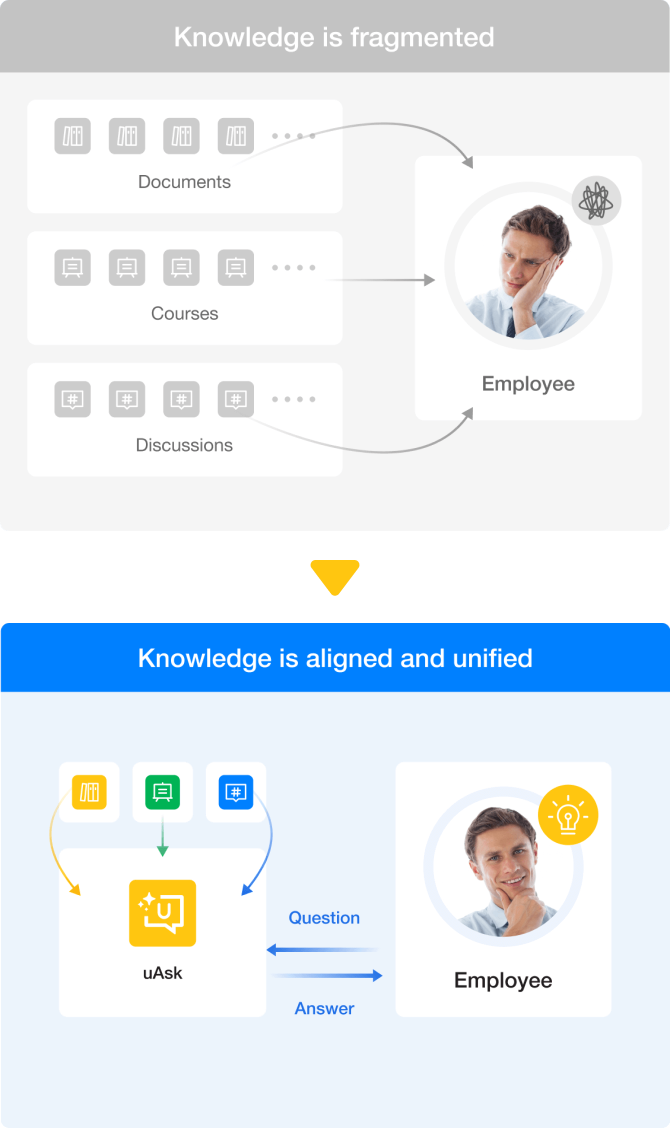Efficiently search and use any content in your enterprise’s knowledge base by asking simple questions to UMU’s uAsk AI Assistant.
