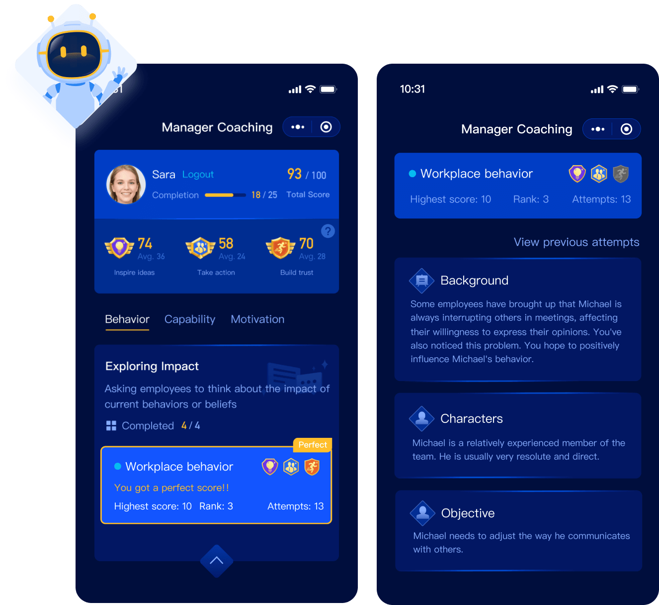 Practice coaching skills with bite-sized exercises and gamified experiences.